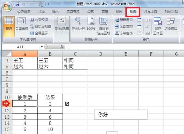 2、然后选择目标表格第二行首列的那个单元格,点击菜单栏中的“视图”选项。