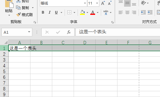 2、电脑打开Excel表格后,把表头设置在第一行,然后选择第一行。