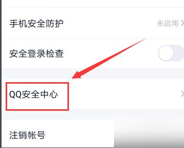 5、接着在打开的帐号安全界面,点击“QQ安全中心”
