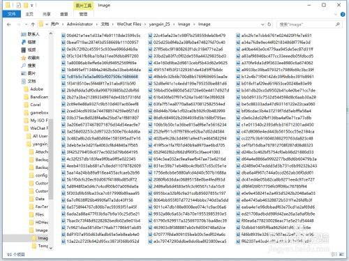 然后返回【Wechat Files】文件夹,打开【Image】文件夹,在里面还有一个【Image】文件夹,点击进入后,就看看到所有图片列表,微信电脑端里所有的图片都在这个文件夹中。