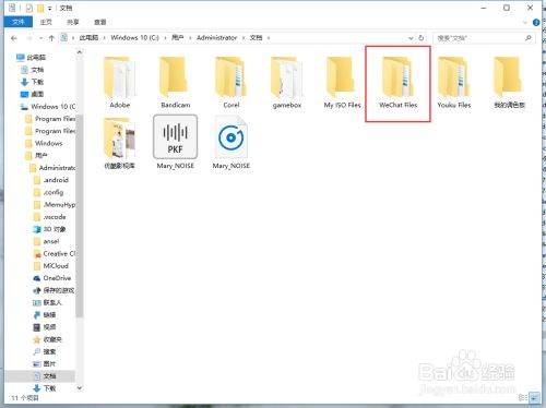 在【文档】文件夹中会有很多系统默认生成的应用的文件夹,找到【Wechat Files】文件夹,这个文件夹就是微信电脑端默认保存的所有文件的位置,双击打开【Wechat Files】文件夹。