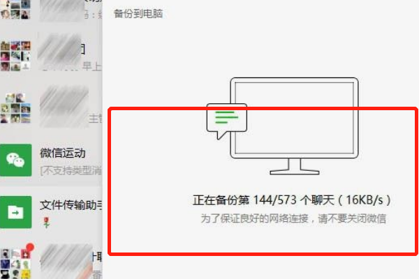 6、在手机上点击【备份全部聊天记录】,在此期间不要关闭屏幕,并保持微信在前台运行。