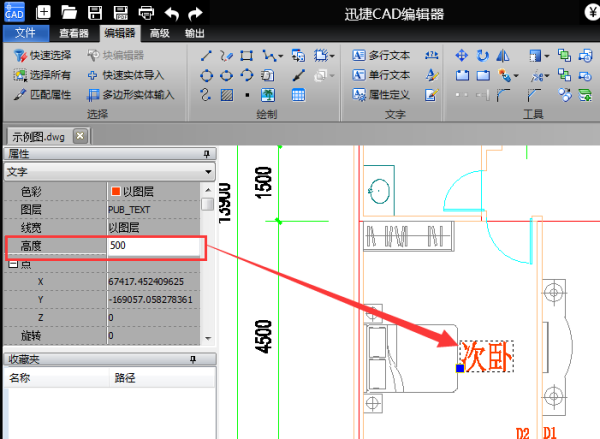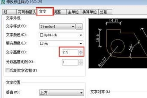 4.在这里,我们将字体高度从2.5更改为5,看看修改前后图纸变化的效果。