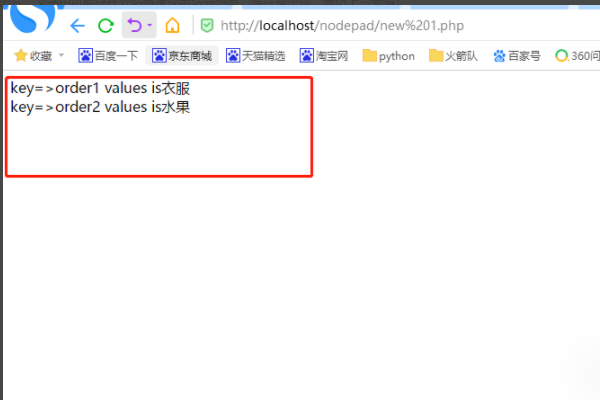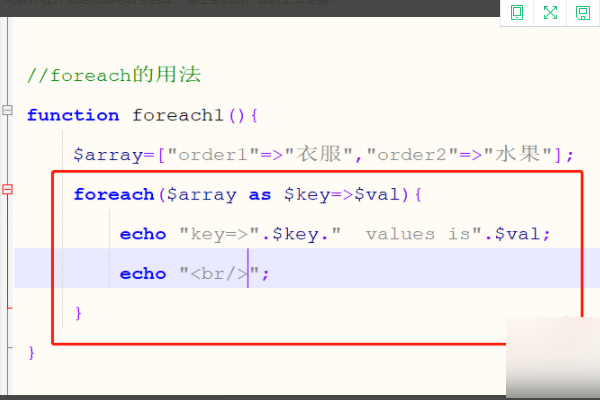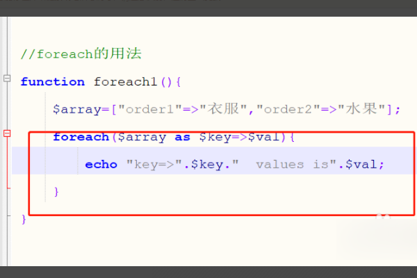 3、然后我们创建一个关联数组,$array=["order1"=>"衣服","order2"=>"水果"]。