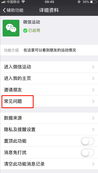 9、如果不清楚自己的手机型号是否支持微信运动功能,可以点击详细资料页面的“常见问题”进行查看;