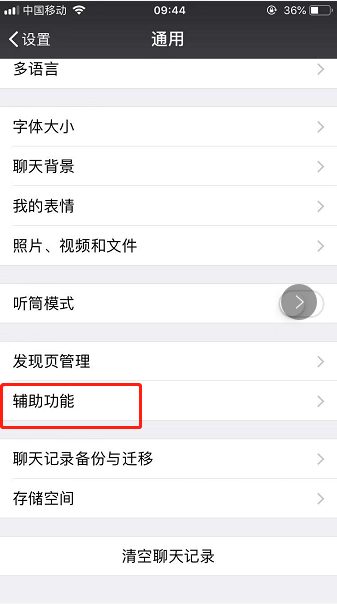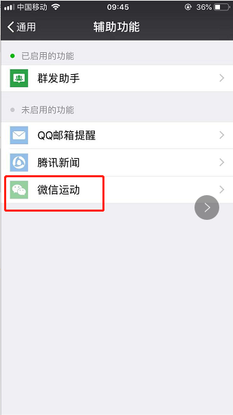 6、在辅助功能界面能看到已启用导的功能和未启用的功能,查看自己的微信运动是否已启用;