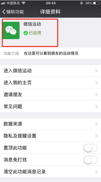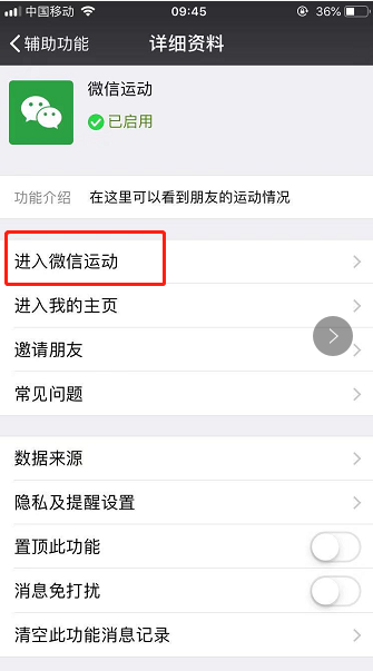 7、若未启用,则点击“微信运动”进入详细资料后,点击“启用该功能”;