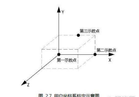 2.标定方法:用户坐标标定方法相对比较简单。一般通过示教3个示教点实现,第一个示教点是用户坐标系的原点;第二个示教点在X轴上,第一个示教点到第二个示教点的连线是X轴,所挃方向为X正方向;第三个示教点在Y轴的正方向区域内。Z轴由右手手法则确定。
