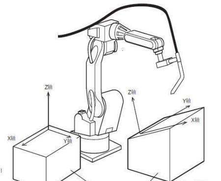 1.定义:用户坐标系定义在工件上,在机器人动作允许范围内的任意位置,设定任意角度的X、Y、Z 轴,原点位于机器人抓取的工件上,坐标系的方向根据客户需要任意定义。用户坐标也是可以设置多个。