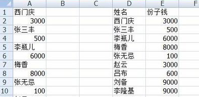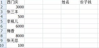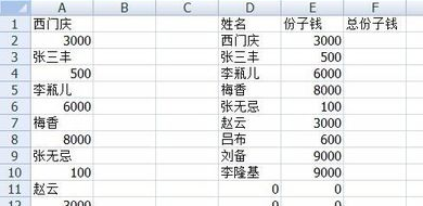6、E2单元格下拉得出人名所有对应的份子钱清单
