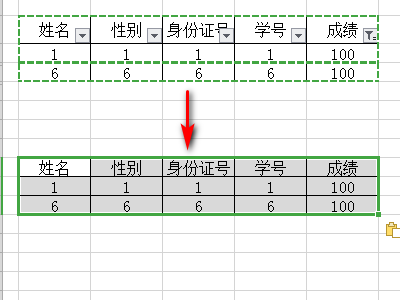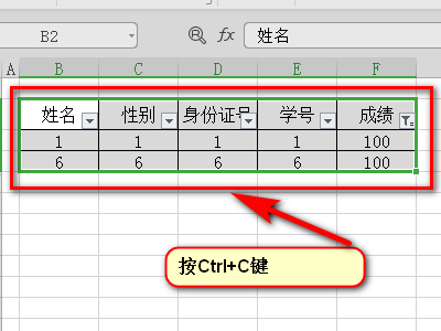 5.我们就会看到表格中只有成绩是100的人的信息,选中该表格,并按Ctrl+C复制该表格。