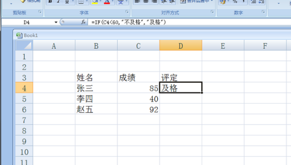 6、进行最后一步操作,输入判定不成立的结果为“及格”。