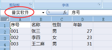 3、选中所编辑的内容,在名称框中输入数据库的名称并按回车键。(注:在此把新建的数据库命名为“普实软件”)