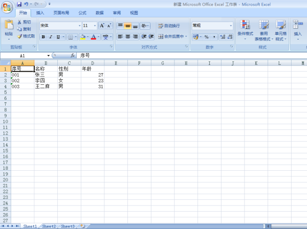 2、在新建 Microsoft Excel 工作表中输入要编辑的内容。如图: