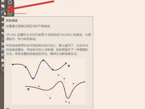 2、当然,也可以点击菜单栏“绘图”,然后下拉菜单中选择“样条曲线”按钮