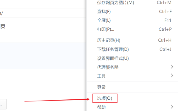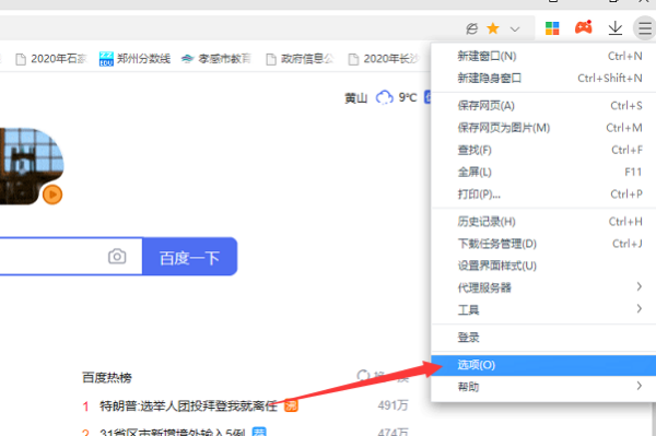 3、在弹出的菜单中,点击选项,进入360极速浏览器设置页面。