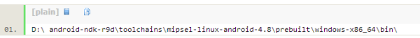 在NDK中自带了适用于各个操作系统和CPU架构的工具链,其中就包含了这两个命令,只不过名字稍有变化,你可以在NDK目录的toolchains目录下找到他们。以我的Mac电脑为例,如果我要找的是适用于armeabi架构的工具,那么他们分别为arm-linux-androideabi-addr2line和arm-linux-androideabi-objdump;位置在下面目录中,后续介绍中将省略此位置: