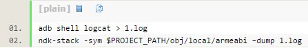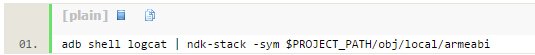 这个命令行工具包含在NDK工具的安装目录,和ndk-build及其他常用的一些NDK命令放在一起,比如在我的电脑上,其位置是/android-ndk-r9d/ndk-stack。根据Google官方文档,NDK从r6版本开始提供ndk-stack命令,如果你用的之前的版本,建议还是尽快升级至最新的版本。使用ndk –stack命令也有两种方式