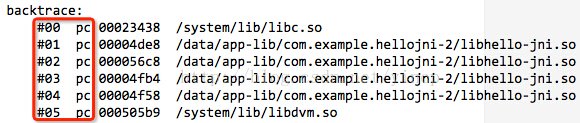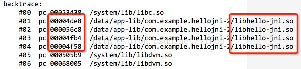 其实很简单,就是找到backtrace信息中,属于我们自己的so文件报错的行。