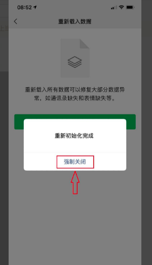 7、然后选择强制关闭,重新登陆微信就可以使已经过期的文件。