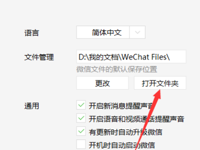 4、此时显示微信接收文件存储路径,点击打开文件夹。
