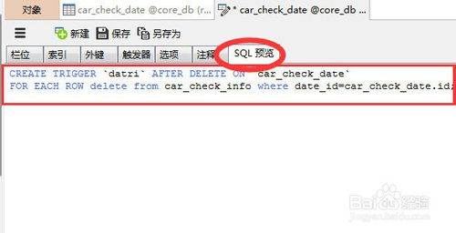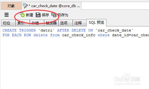 最后就是保存了,由于我们做的是触发器,保存之后,在执行删除操作时,这个触发器才相当于 被执行。