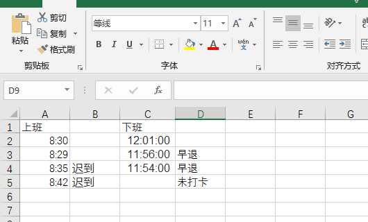 EXCEL 怎么设置考勤表标注打卡上下班时间和迟到早退情况