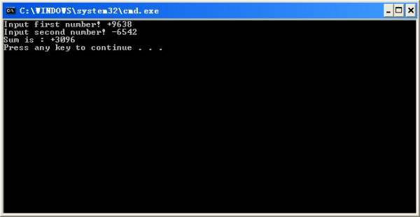 ;编写多字节有符号数的加法程序,从键盘接收两个加数,在屏幕上显示结果。