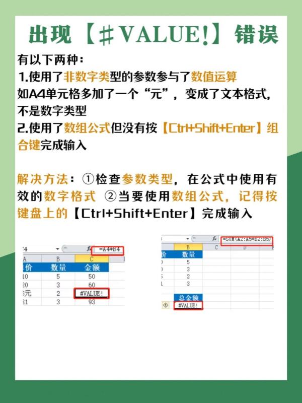 解决方法:①检查参数类型,在公式中使用有效的数字格式②当要使用数组公式,记得按键盘上的【Ctrl+Shift+Enter】完成输入