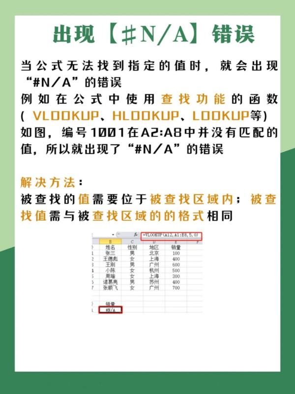 当公式无法找到指定的值时,就会出现“#N/A”的错误