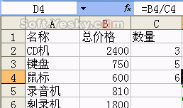 具体实例:如图1的所示的工作表,我们利用公式根据总价格和数量计算单价,在D2单元格中输入的公式为“=B2/C2”,把公式复制到D6单元格后,可以看到在D4、D5和D6单元格中返回了“#DIV/0!”错误值,原因是它们的除数为零或是空白单元格。