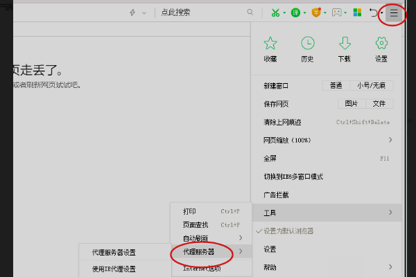 3、如果是客户端浏览器配置的问题,以360浏览器为例,出现502 Bad Gateway可能是设置了代 代理导致的。