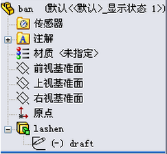 首先将模型的特征名称和草图名称修改为英文名称,如将拉伸特征修改为lashen,草图特征修改为draft,如图1。