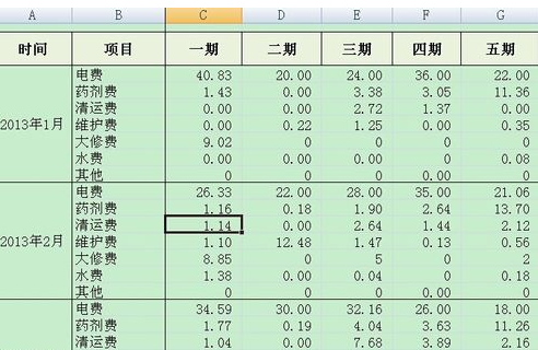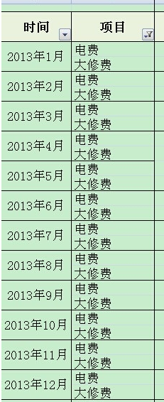 4.2013年电费与大修费合计:同样全选整个Excel,勾选项目中电费和大修,确定之后再勾选时间段,也可以任意选择其他时间段和项目。但一定要注意前后顺序