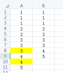 前提条件是你A列的数比B列的只多不少,比如A列有3个3,比B列中的3多,才会将多余的3标出来,如果A列的3比B列少,这个公式就不会生效