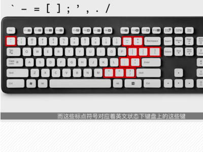 5、在中文状态下,这些“· - = 【 】 ; ‘ ’ , 。 、”标点符号,对应着键盘上的键。