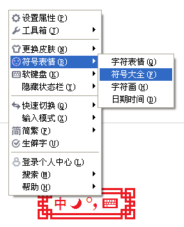第二步:出现菜单后,选择“符号表情”中的“符号大全”。
