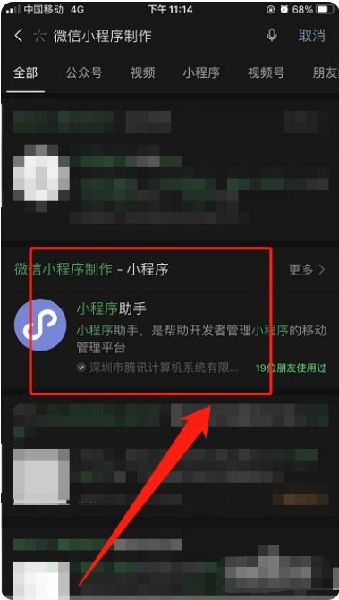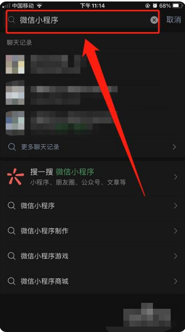 1、打开手机“微信”软件,搜索“小程序开发”。