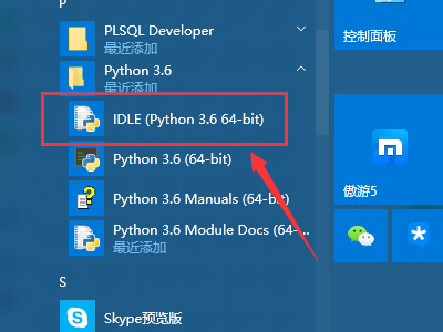1、首先点击电脑上的开始菜单,在开始菜单中安装的python目录下点击‘IDLE(Python 3.6 64-bit),进入IDLE。