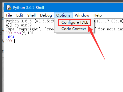 3、点击菜单栏的【Options】,然后点击【Configure IDLE】。