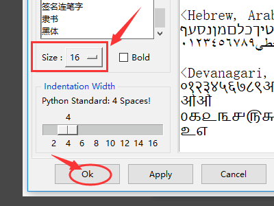 2、然后在打开的页面,可以看到默认字体大小给出一个直观的展示,觉得调整大一点比较好。
