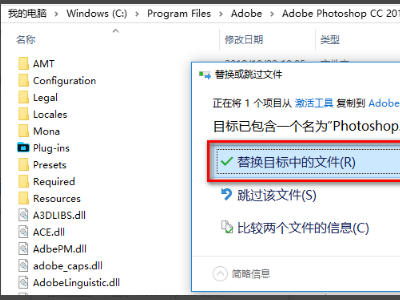 3、粘贴刚刚复制的文件,点击“替换目标中的文件”。