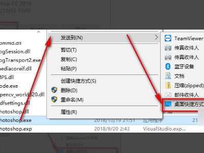 5、选中Photoshop鼠标右键,选择发送到,桌面快捷方式。