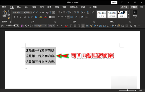 6、关闭后,点击弹窗下方的“确定”按钮,此时,我们再去调整文档内容的行间距时,就可以发现行间距可以自由调整了。