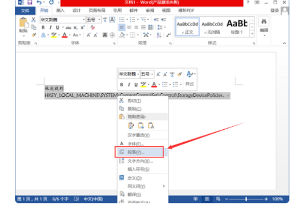 同样选中要修改的文字,右键单击,选择【段落】。