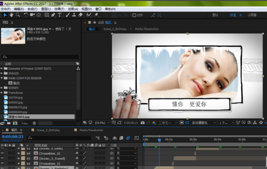 9、AE素材模板中的图片已成功替换,如图所示。