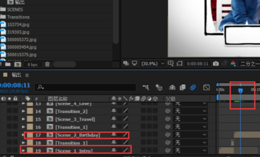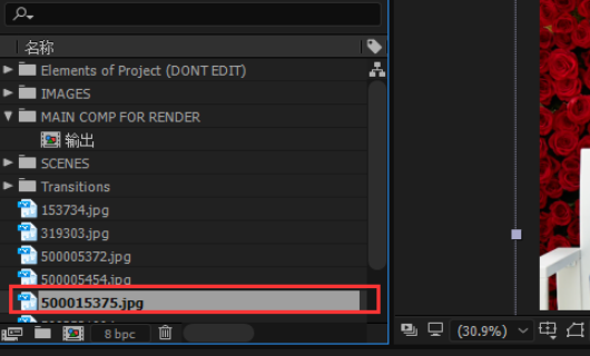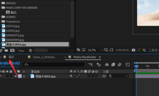 3、相同的方法依次找到该图片所在的复合成,直到找到该图片为止。