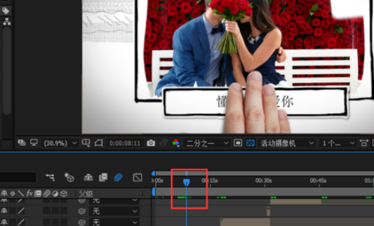 1、AE打开视频,然后把光标移动到要更换图片的页面。