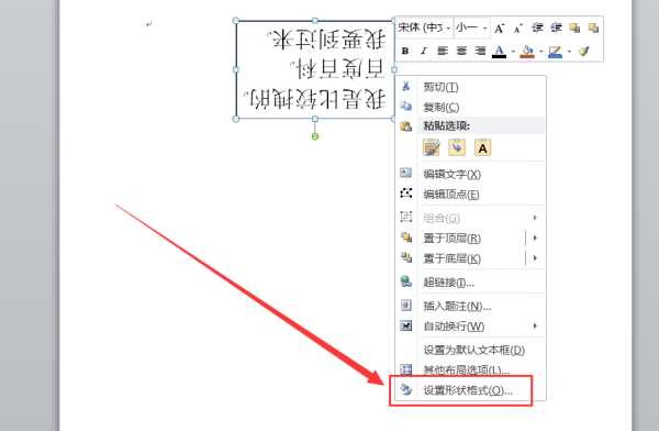 4、旋转180度后使用鼠标右键点击文本框,然后选择“设置形状格式”。