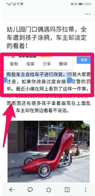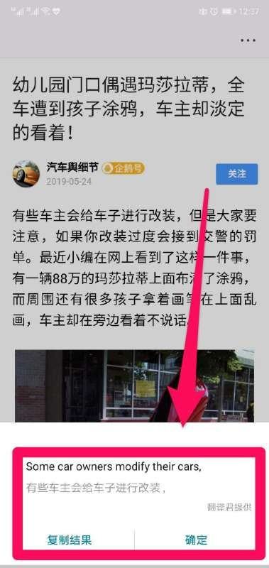 3、用手指复制需要翻译的文字,就会弹出翻译字样;